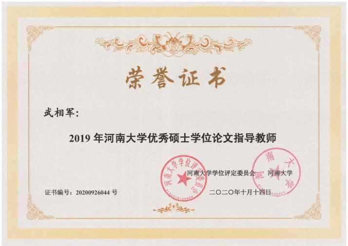 河南大学优秀硕士学位论文指导教师